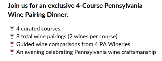 An intimate pairing event celebrating PA wines, great food, and the stories behind them.